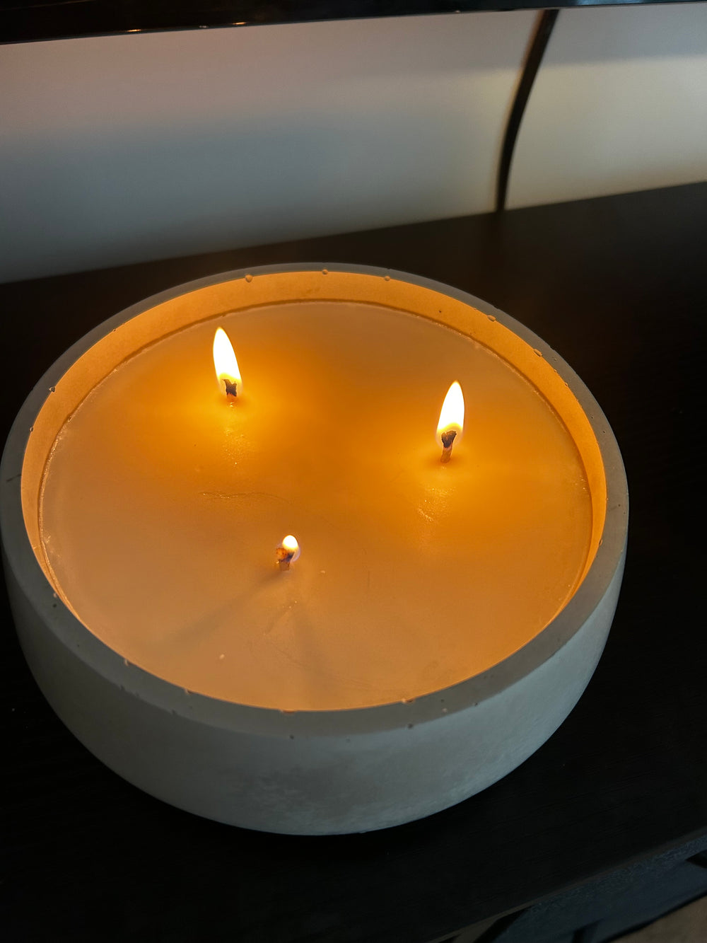 This candle is perfect for customers searching for luxury bowl candles, large concrete candles, modern statement candles, and upscale home décor candles.