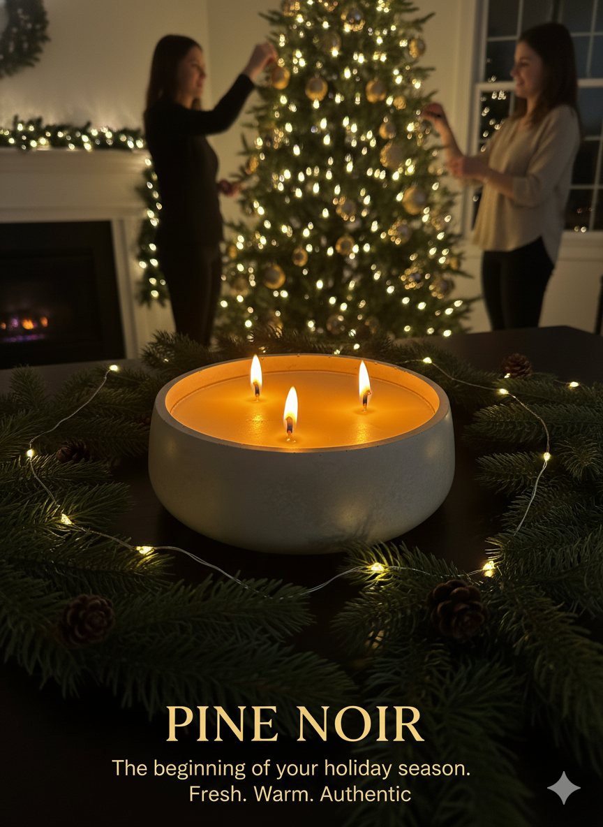 Pine Noire is the opening chapter of the season β a moody, elegant twist on the classic Christmas tree candle.